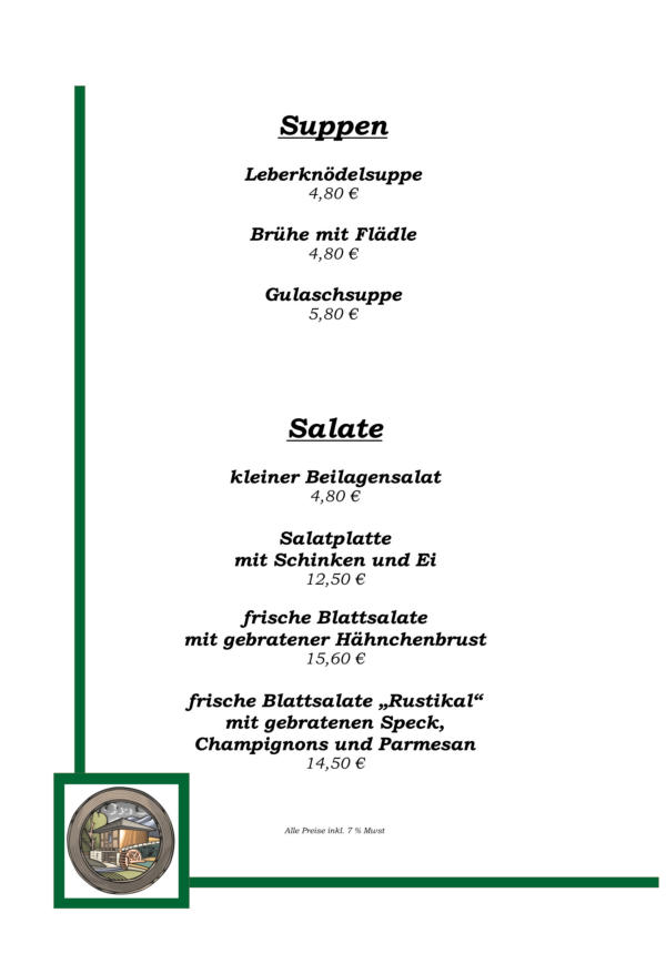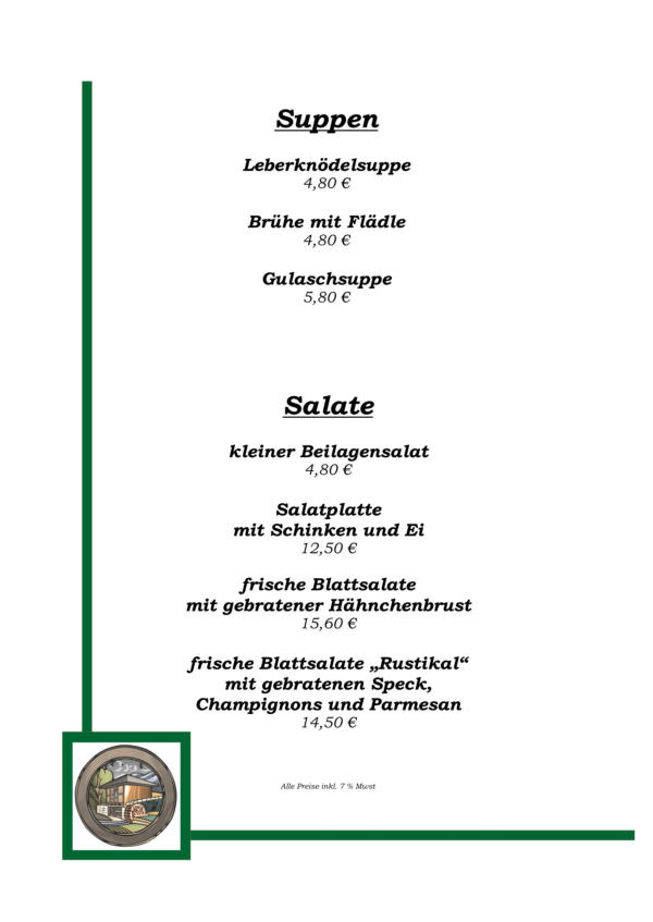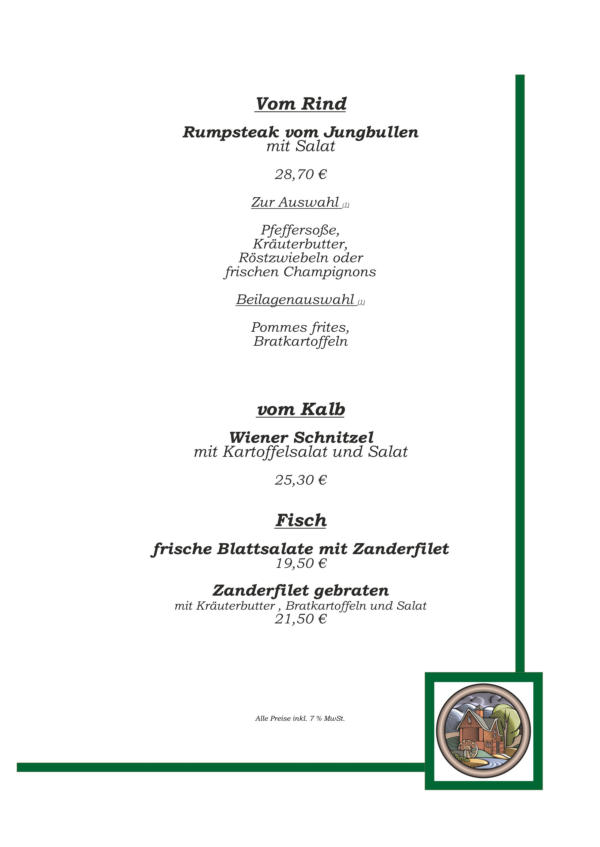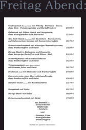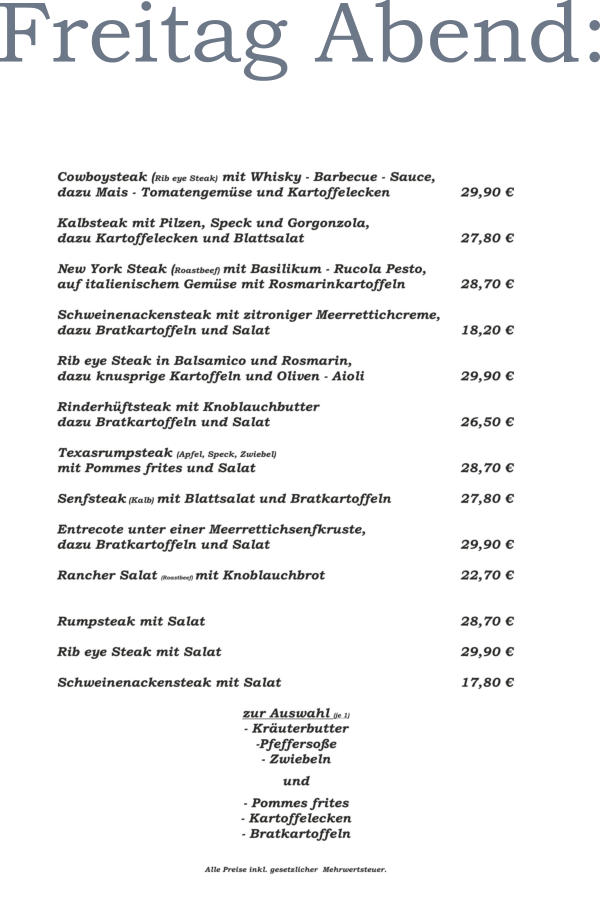 Freitag Abend gilt nur die Wochenkarte, unsere Spezialitätenkarte und die Freitag Abend Steak Karte!