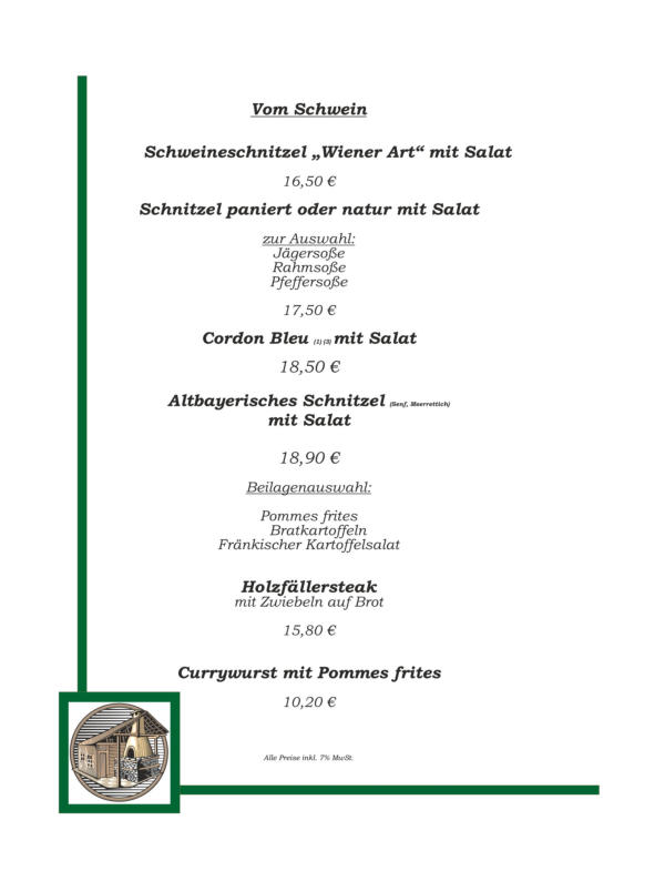 Reservierungen unter der Telefonnummer 09566 255 während der Öffnungszeiten.