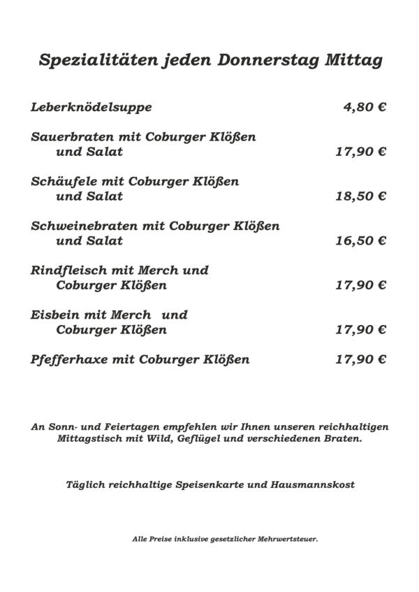 Jeden Donnerstag und Sonntag bieten wir Ihnen verschiedene Braten mit Coburger Klößen an!