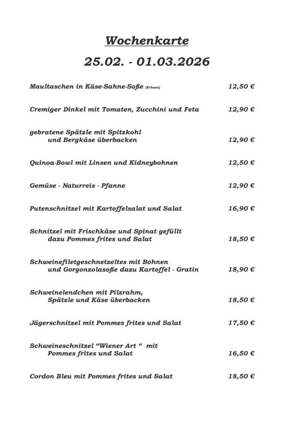 Neben unserer reichhaltigen Speisekarte bieten wir Ihnen jede Woche eine Aktionskarte mit verschiedenen Gerichten
