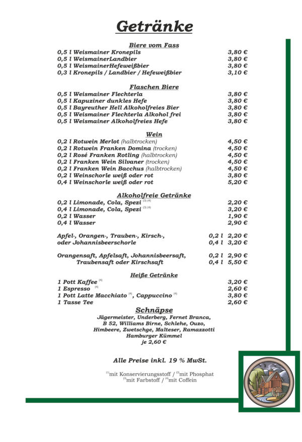 Reservierungen unter der Telefonnummer 09566 255 während der Öffnungszeiten.