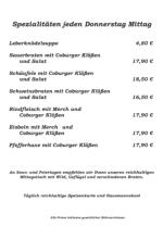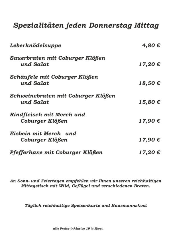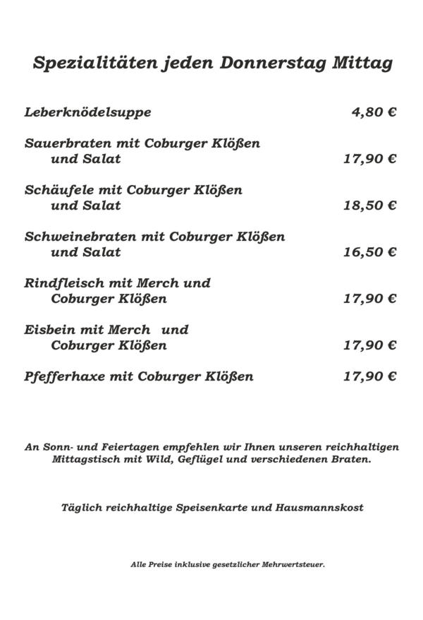 Jeden Donnerstag und Sonntag bieten wir Ihnen verschiedene Braten mit Coburger Klößen an!