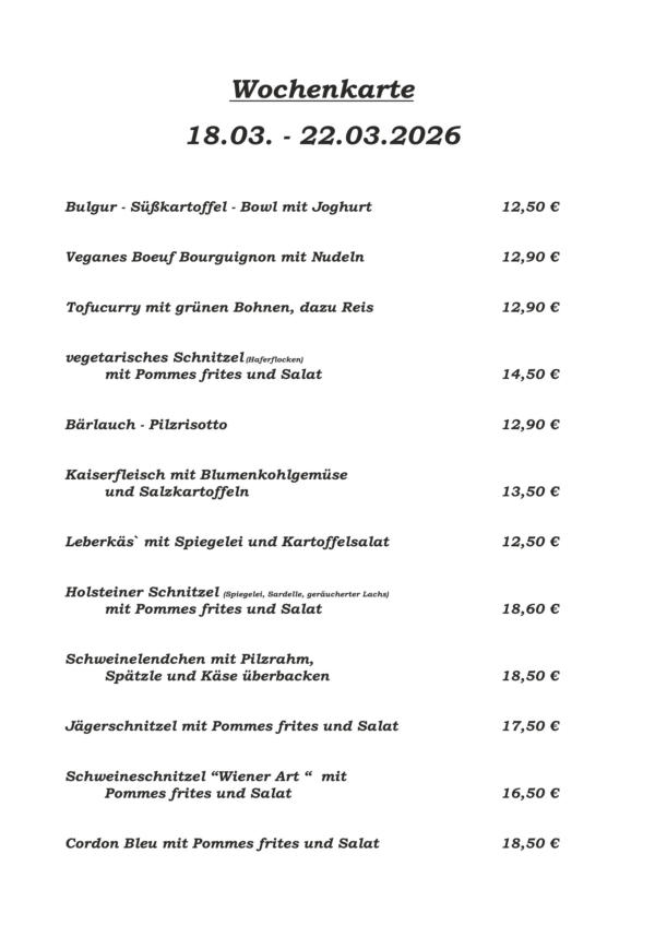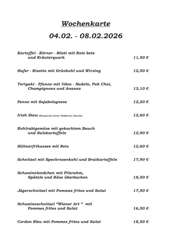 Neben unserer reichhaltigen Speisekarte bieten wir Ihnen jede Woche eine Aktionskarte mit verschiedenen Gerichten