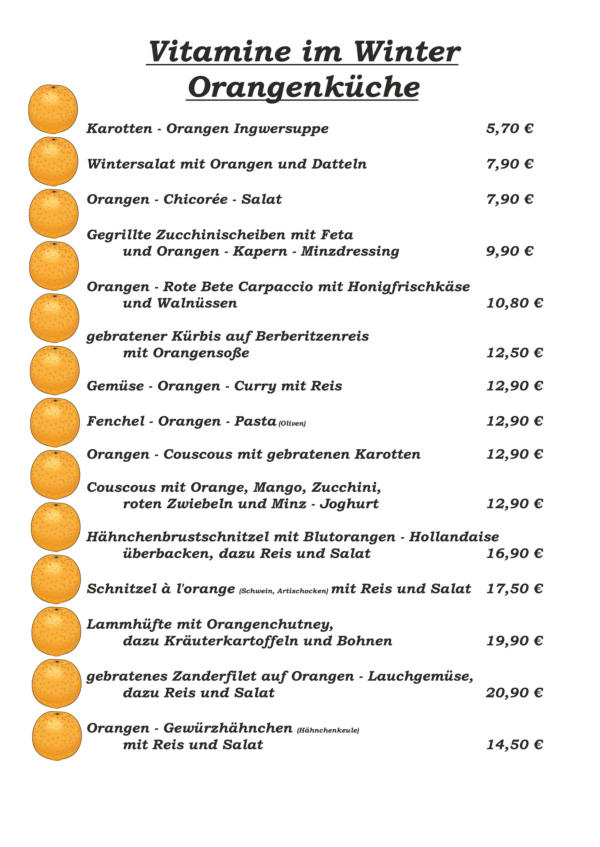 zu einem Thema und eine Wochenkarte mit abwechslungsreichen Speisen und Gerichten der Saison.