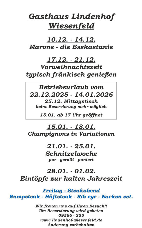 Betriebsurlaub vom 22.12. bis einschließlich 14.01.2026!