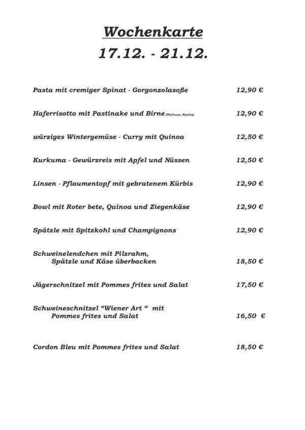 zu einem Thema und eine Wochenkarte mit abwechslungsreichen Speisen und Gerichten der Saison.